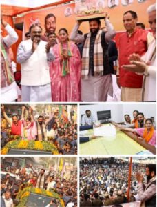 रोड शो में बोले मुख्यमंत्री नायब सिंह सैनी – कोमल सैनी को मेयर बनाएं, बाकी काम मुझ पर छोड़ देंमुख्यमंत्री नायब सिंह सैनी और भाजपा प्रदेश अध्यक्ष पंडित मोहन लाल बड़ौली ने मेयर प्रत्याशी कोमल सैनी का कराया नामांकनरोड शो में मुख्यमंत्री नायब सैनी और प्रदेश अध्यक्ष पंडित मोहन लाल बड़ौली पर लोगों ने की फूलों की वर्षा, जगह-जगह किया स्वागत